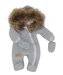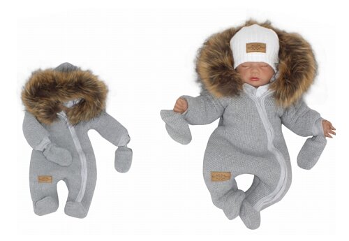 Z&Z Zimní kombinéza s kapucí a kožešinou + rukavičky, šedá; 56 (1-2m)