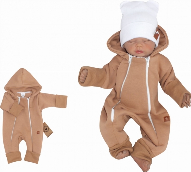 Z&Z Dětský teplákový dvouvrstvý rostoucí overálek s kapucí, cappuccino, vel. 80; 80 (9-12m)