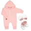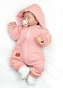 Bavlněný oteplený overálek s kapucí, rukavičky, botky, 3D sada Nature - korálová; 56 (1-2m)