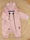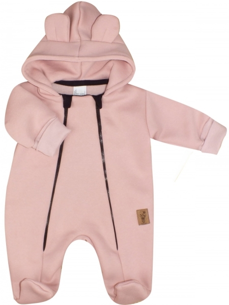 Oteplený dětský overálek se šlapkama a kapucí, Kazum, pudrový; 56 (1-2m)
