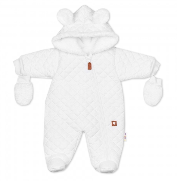 Zimní prošívaná kombinéza s chlupáčkovou podšívkou + rukavičky, Love, bílá, vel. 74; 74 (6-9m)