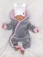 Z&Z Velurový dětský overálek s kapucí a oušky - šedo,růžový, vel. 86; 86 (12-18m)