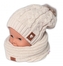Zimní dvouvrstvá čepice s bambulí + komínek Love, béžová; 104/110 (3-5r)