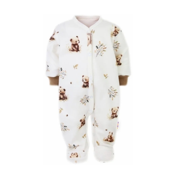 Kojenecký overálek, pyžamo, bavlna, Roztomilý medvídek, ecru; 56 (1-2m)