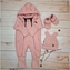 Oteplený dětský overal bez šlapek s kapucí, čepička + botičky, 3D, koralový, vel. 80; 80 (9-12m)
