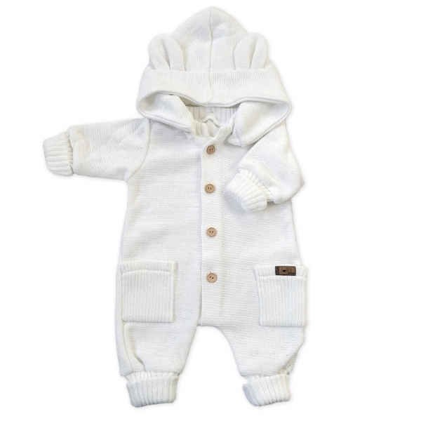 Dětský pletený overálek s odepínací kapucí - kokosově bílý; 68/74 (6-9m)