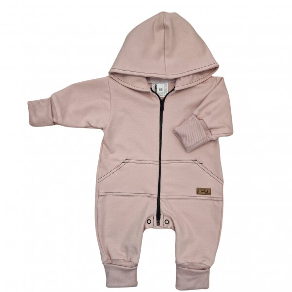 Dětský teplákový overal s prodlouženými náplety, pudrově růžový, vel. 80; 80 (9-12m)
