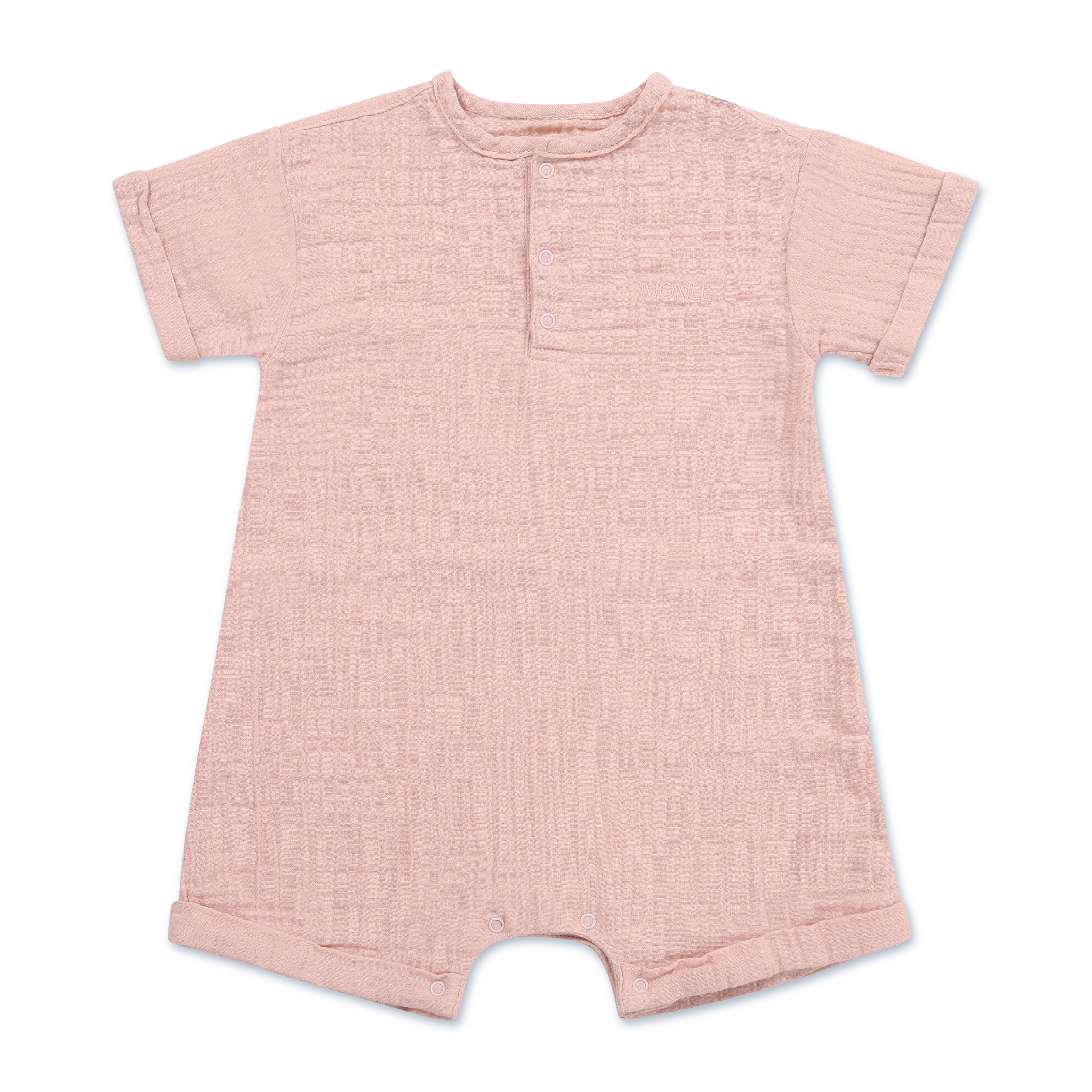 Dětský mušelínový overal s krátkým rukávem Moniel je ideální oblečení na jaro a léto. Má oversize střih a vydrží tři běžné dětské velikosti. Je prodyšný, hebký a skvělý do horkých dnů. Má patentky u krku a v rozkroku pro pohodlné oblékání i přebalování miminka. Velikosti od narození až do dvou let.