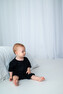 Moniel dětský rostoucí mušelínový overal s krátkým rukávem Black