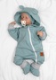 Rostoucí teplákový overal pro miminko, čepice, botky, 3D, Nature, ledová máta, šedá, 68/74; 68/74 (6-9m); mátová, šedá; 100 % bavlna, elastan