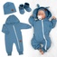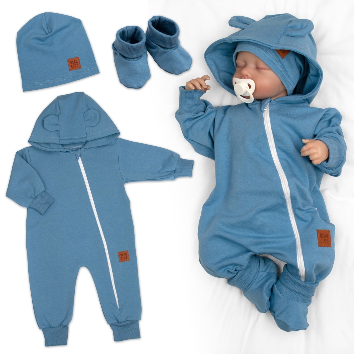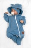 Rostoucí teplákový overal pro miminko, čepice, botky, 3D, Nature - tm. modrý; 56/62 (0-3m); modrá; 95% bavlna + 5% elastan