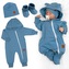 3 dílná sada: Kromě overalu sada obsahuje také stylovou čepičku a botky/ponožtičky pro nechodící děti, které udrží nožičky