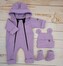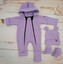 Oteplený dětský overal bez šlapek s kapucí, čepička + botičky, 3D, Kazum, lila, vel. 80; 80 (9-12m); fialová