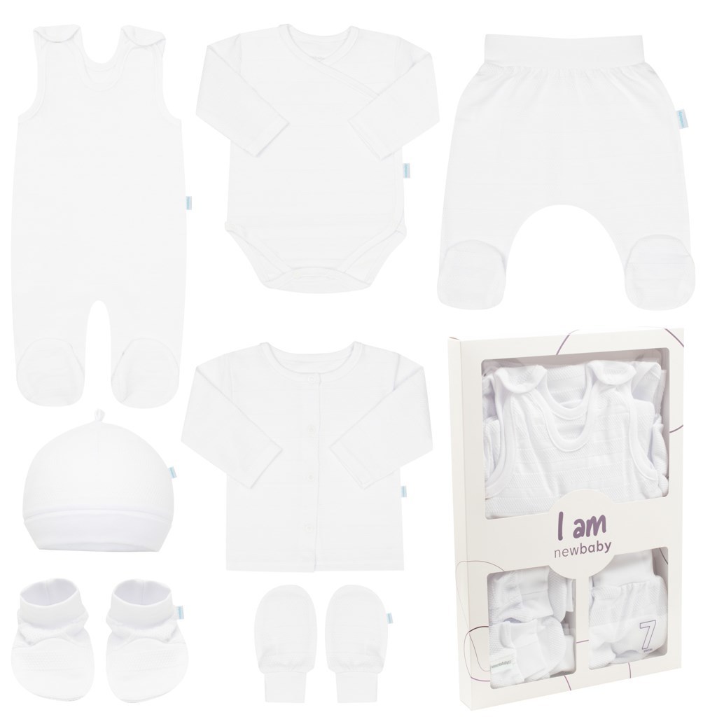 7-dílná kojenecká soupravička do porodnice New Baby I AM bílá - velikost 56 (0-3m)