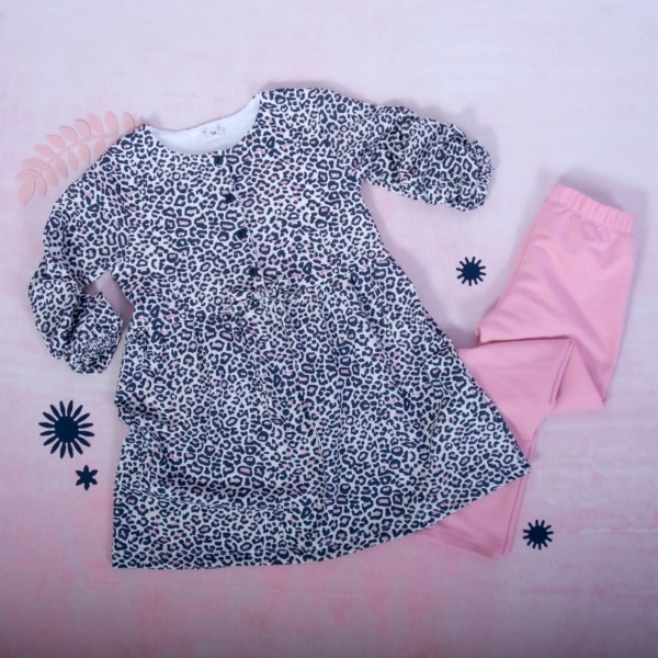 K-Baby 2 dílná sada - šaty + legíny, Gepardík, vel. 80; 80 (9-12m)