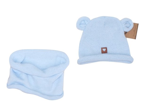Z&Z Pletená čepice s oušky + komínek, světle modrá; 56-68 (0-6 m)