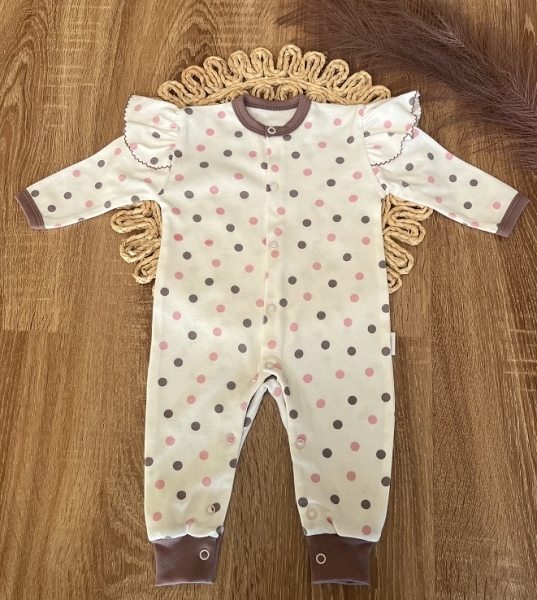 Kojenecký overal bez šlapek Mamatti, Puntík - smetanový s potiskem, vel. 74