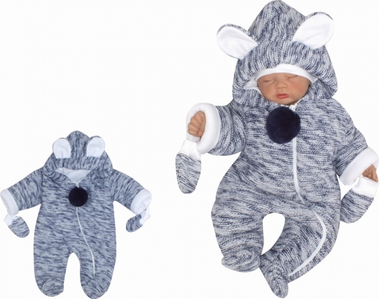 Z&Z Oteplená pletená kombinéza s kapucí a oušky + rukavičky - granát, vel. 68; 68 (3-6m)