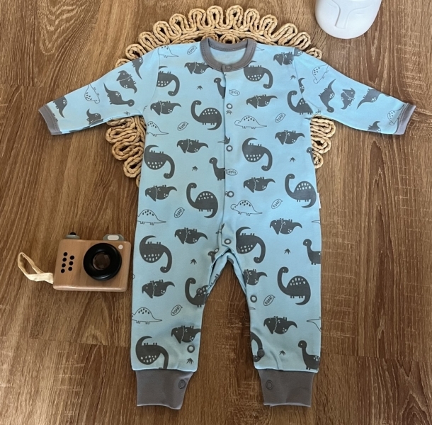 Kojenecký overal bez šlapek Mamatti, Dino park - modré s potiskem