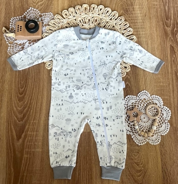 Kojenecký overal bez šlapek Mamatti, Město, bílo/šedý; 68 (3-6m)