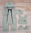 Materiál: Overálek (medvídek na vnitřní straně) 95% bavlna 5% elastan, žebrovaná čepice: 95% bavlna 5% elastan, Botičy: 95% bavlna, 5% elastan.