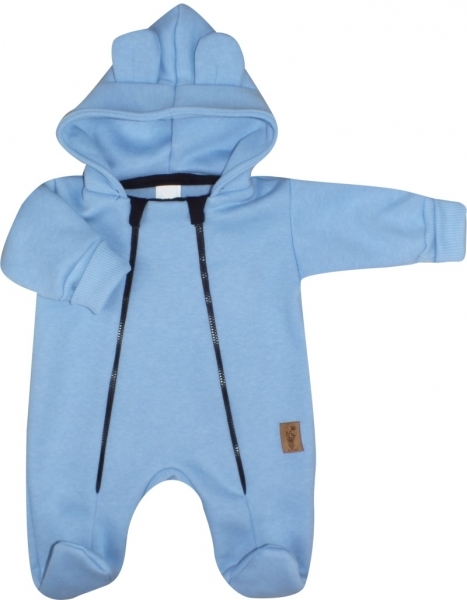 Oteplený dětský overálek se šlapkama a kapucí, Kazum, modrý, vel. 68; 68 (3-6m)