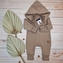 Dětský teplákový overal bez šlapek s odepínatelnou kapucí, bavlna, mocca, vel. 80; 80 (9-12m)