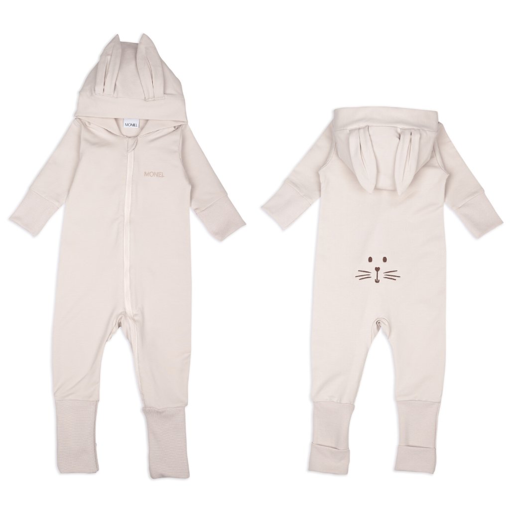 Moniel Dětský rostoucí teplákový overal Králík Basic Light Beige 56 cm