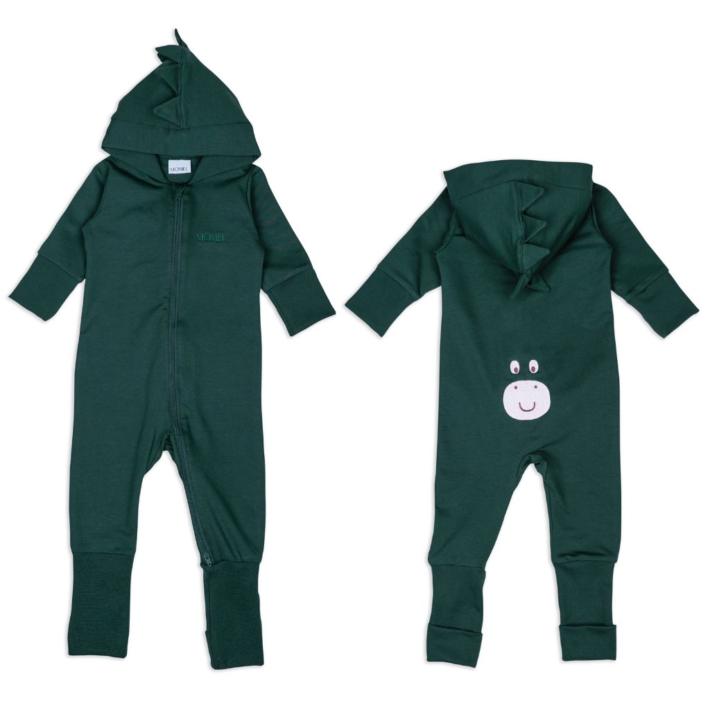 Moniel Dětský rostoucí teplákový overal Dinosaur Basic Dark Green 62/68 cm