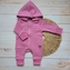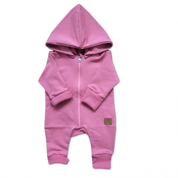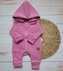 Dětský teplákový overal bez šlapek s odepínatelnou kapucí, bavlna, růžová, vel. 62; 62 (2-3m)