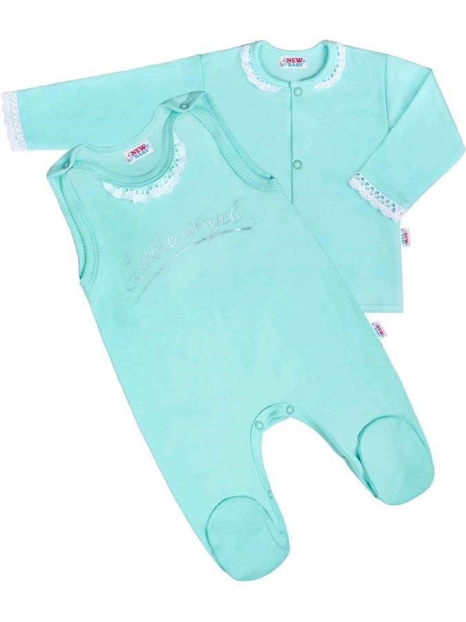 2-dílná soupravička New Baby Angel pro miminka. Dětská soupravička obsahuje dupačky a kabátek. Dětský kabátek je jednobarevný, zdobí ho krásný ozdobný lem kolem krčku a ručiček. Praktické zapínání na cvočky po celé délce velmi usnadní oblékání a přebalování. Dupačky zdobí nápis Little angel, ozdobný lem kolem krčku a zadní stranu zdobí obrázek andělských křídel, který se krásně leskne. Praktické zapínání na ramínkách a mezi nožičkami velmi usnadní oblékání a přebalování. Složení: 100% bavlna. Rozměry: kabátek: obvod kolem hrudníku cca 47 cm, délka od ramínek cca 30 cm, délka rukávu cca 22 cm. Rozměry: dupačky: obvod kolem hrudníku cca 46 cm, celková délka cca 54 cm, délka od rozkroku cca 17 cm.