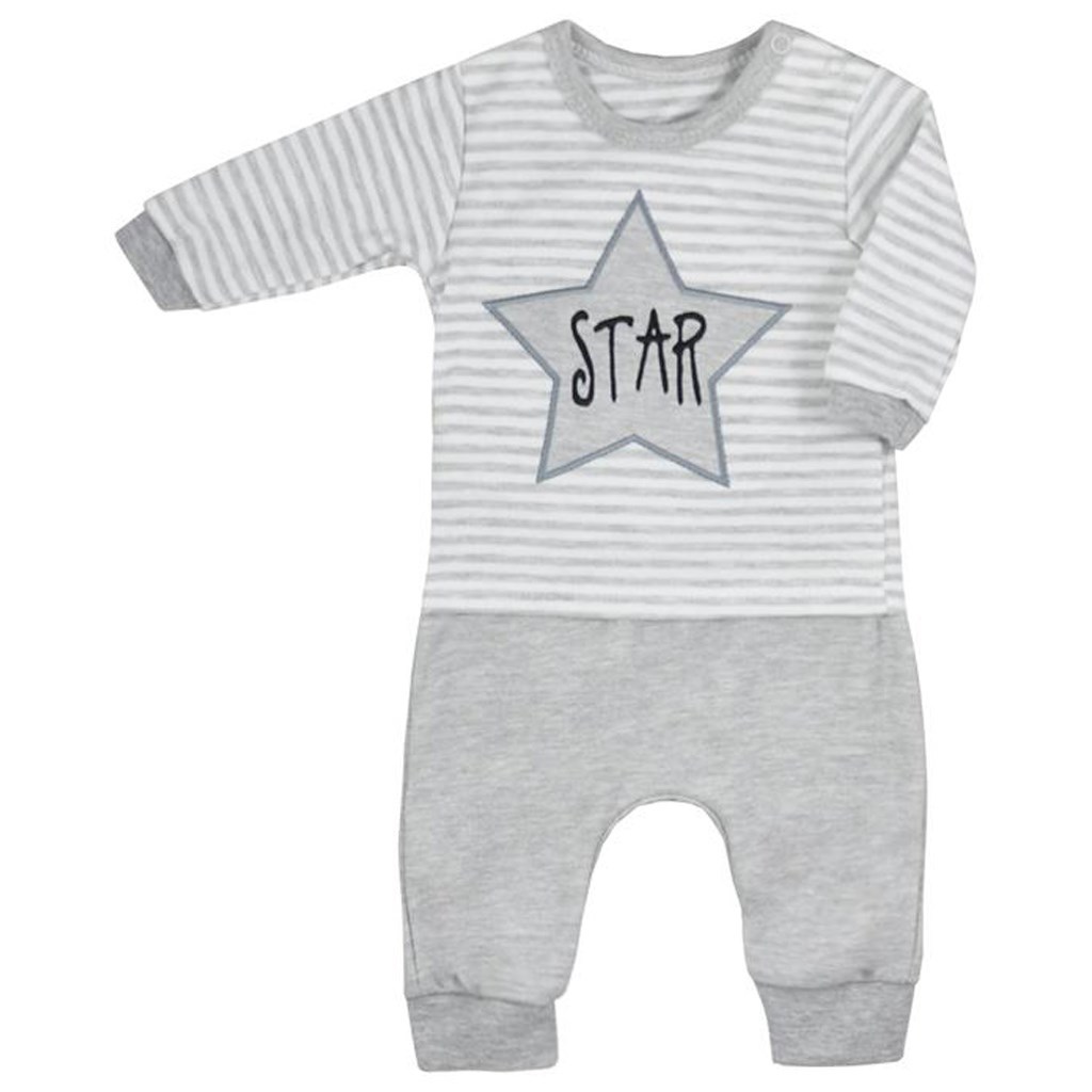2-dílná soupravička Koala Star. Součástí moderní soupravičky s pruhy jsou tepláčky a tričko. Tričko má zapínání na cvočky na ramínku a je zdobeno hvězdičkou s nápisem STAR. Tepláčky mají na nohavičkách široký lem a stylový snížený sed. Má všestranné využití. Soupravička je moderní a zároveň kvalitní a praktická. Materiál: 100% bavlna.