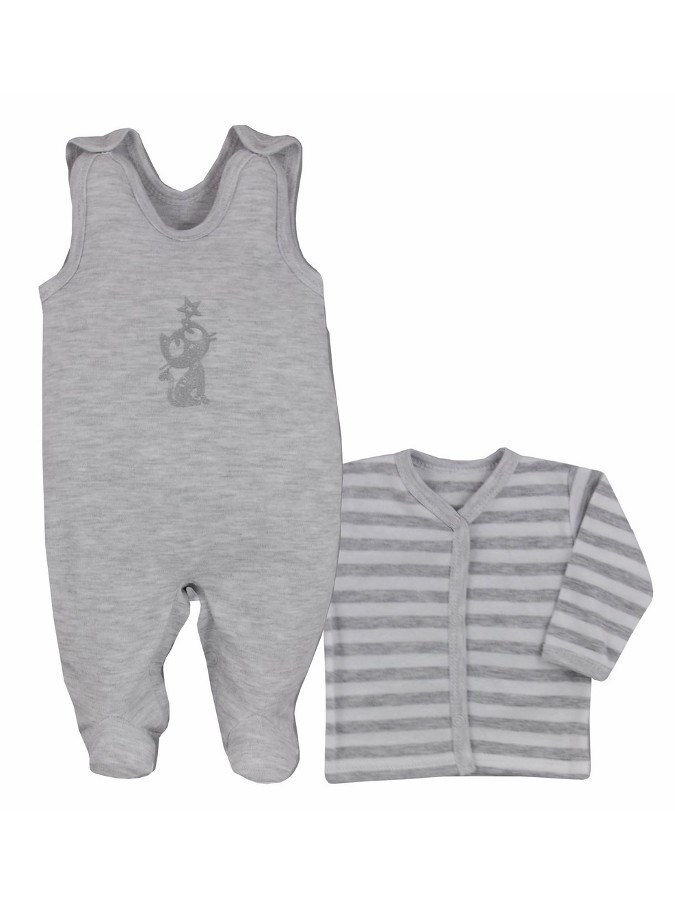 2-dílná bavlněná kojenecká soupravička Bobas Fashion Stříbrná Kočka šedá - velikost 74 (6-9m)