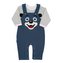 2-dílná souprava české značky New Baby For Babies. Součástí soupravičky jsou lacláčky a tričko s dlohým rukávem. Lacláčky mají moderní střih, který jim dodává ten správný šmrc, a jsou zdobeny usměvavou tvářičkou medvídka. Jsou vyrobeny z hrubšího materiálu a proto jsou vhodné i na zimní a podzimní období. Zapínání pod ramínkami, po stranách a mezi nožičkami na cvočky. Tričko s dlohým rukávem je zdobeno stále modernímy pruhy. Praktické zapínání na cvočky na ramínku velmi usnadní oblékání. Materiál: lacláčky: 70% bavlna, 25% polyester, 5% elastan, tričko: 100% bavlna.