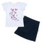 2-dílna soupravička pro holčičky české značky New Baby Butterflies. Soupravička se skládá z trička a sukýnky. Tričko s krátkými nařasenými rukávy je zdobeno obrázkem motýlků. Zapínání na ramínku na cvočky ulehčí oblékání přes hlavičku miminka. Tmavě modrou sukýnku zdobí krásný volánek, který dodává sukýnce ten správný šmrnc. V pase je širší guma, která netlačí na bříško miminka. Složení: tričko: 100% bavlna, sukýnka: 95% bavlna, 5% elastan.