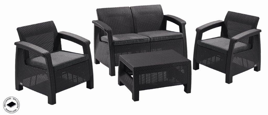Zahradní nábytek Keter Corfu set dvousedačka + dvě křesla + stůl grafitový