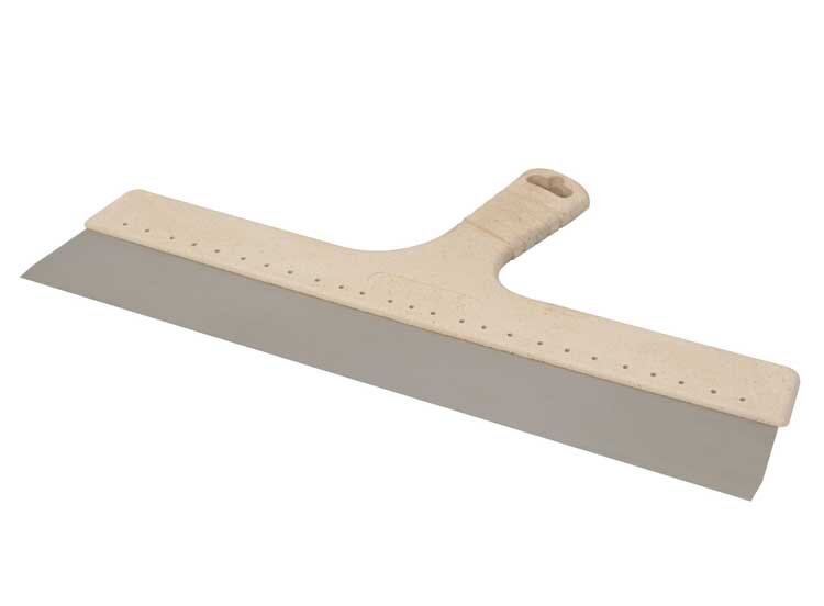 Tato stěrka kombinuje pevnost a odolnost díky nerezovému, kyselině odolnému plechu o tloušťce 0,4 mm s komfortem ergonomicky tvarované rukojeti z dřevoplastu. Rukojeť je navíc opatřena hmatatelnou strukturou dřeva, což usnadňuje držení a zabraňuje sklouznutí během používání. Celková délka čepele je 450 mm a šířka 47 mm, což zaručuje dostatečný pracovní dosah i přesnost při úpravách povrchu.