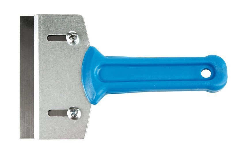 Malířská škrabka s výměnnou čepelí a pohodlnou plastovou rukojetí pro odstranění starých nátěrů a tapet.