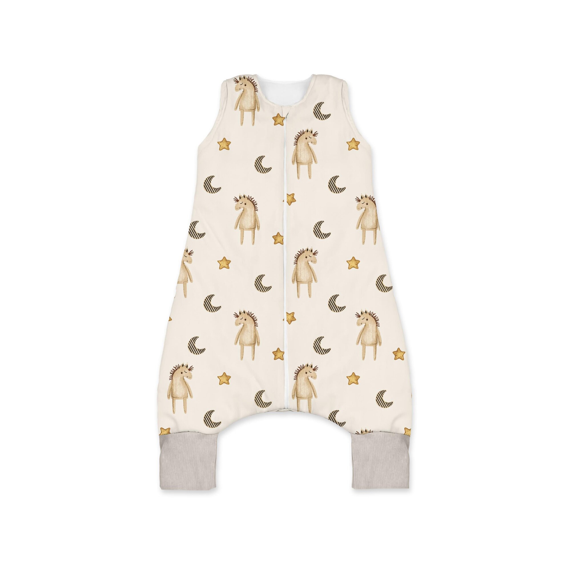 Śpiworek z nogawkami to nie tylko modna i praktyczna alternatywa dla tradycyjnych kocyków, ale także bezpieczne rozwiązanie, które eliminuje ryzyko odkrycia się dziecka w nocy. Elastyczne mankiety na nogawkach doskonale dopasowują się do ciała malucha, zapewniając bezpieczne i wygodne noszenie oraz w razie potrzeby posłuża jako skarpetyki, zasłaniające stópki. Pośrodku śpiworka wszyty został długi zamek, dodatkowo zabezpieczony w górnej części, aby nie podrażniał bródki i skóry dziecka.