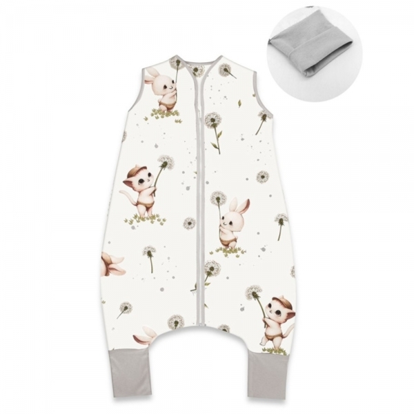 Letní spací vak se zahrnovacími nohavičkami, bavlna, Kocourek a pampeliška - bílá, vel. S