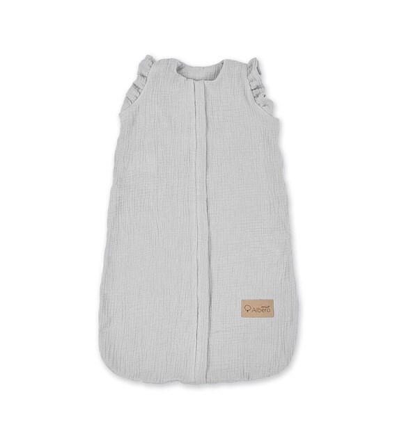 Śpiworek do spania Albero mio (0,5 tog), wykonany jest z muślinu, stanowi idealne rozwiązanie dla zapewnienia komfortu snu najmłodszych w cieplejsze dni. Muślin, znany również jako double gauze, jest w 100% naturalną bawełną o luźnym splocie, co czyni go niezwykle delikatnym, miękkim i przewiewnym. Dzięki tej tkaninie, śpiworek z każdym praniem staje się jeszcze bardziej miękki, a jego naturalna skłonność do marszczenia eliminuje potrzebę prasowania. Muślin jest ceniony za swoje antyalergiczne właściwości oraz charakterystyczną kreszowaną strukturę, która podkreśla jego delikatność.