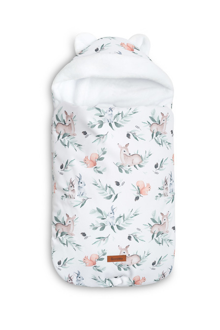 Śpiworek do fotelika oraz wózka głębokiego wykonany został z myślą o najmniejszych dzieciach. Doszyte uszka w kapturku oraz delikatny wzór stanowią o jego uroczym charakterze. Warstwa wierzchnia to wysokiej jakości tkanina wodoodporna z pięknym wzorem. W środku znajduje się puszysta włóknina silikonowa chroniąca przed chłodem. Warstwę wewnętrzną stanowi bardzo delikatny i przyjemny plusz, który daje dodatkowe ciepło. Posiada dwa suwaki, które umożliwiają odpięcie śpiworka z lewej lub prawej strony, a także całkowicie odpięcie przodu. Śpiworek posiada otwory na 3 punktowe pasy bezpieczeństwa. Z powodzeniem można go stosować w nosidełkach, gondolach a nawet sankach. Dedykowany jest dzieciom w wieku od 0-18 miesięcy.Wymiary:43x80 cm (+/- 3 cm)Konserwacja: