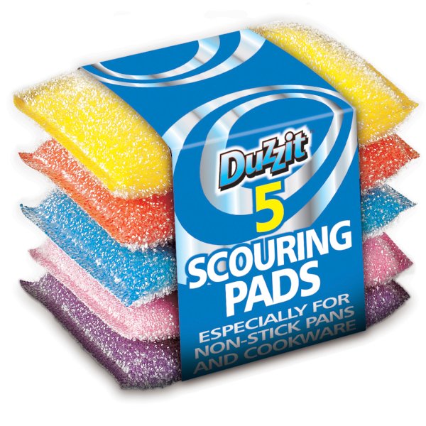 Duzzit abrazivní houbičky vhodné i pro teflonové a nepřilnavé povrchy - 5ks speciální neškrábavé houbičky, které jsou vhodné i pro nádobí s nepřilnavým povrchem (teflon apod...) hobička má abrazivum, které nepoškodí nepřilnavý povrch a mytí telonového nádobí je tak zcela bezpečné.