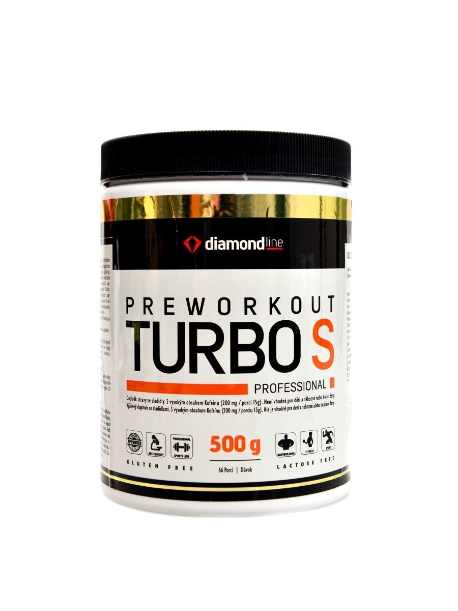 Diamond Line Turbo S je před tréninkový komplexní preparát pro sportovce a osoby provádějící silově-vytrvalostní námahu. Zvyšuje výkonnost během tréninku, tvoří vasodilataci a napomáhá lepší cirkulaci krve.