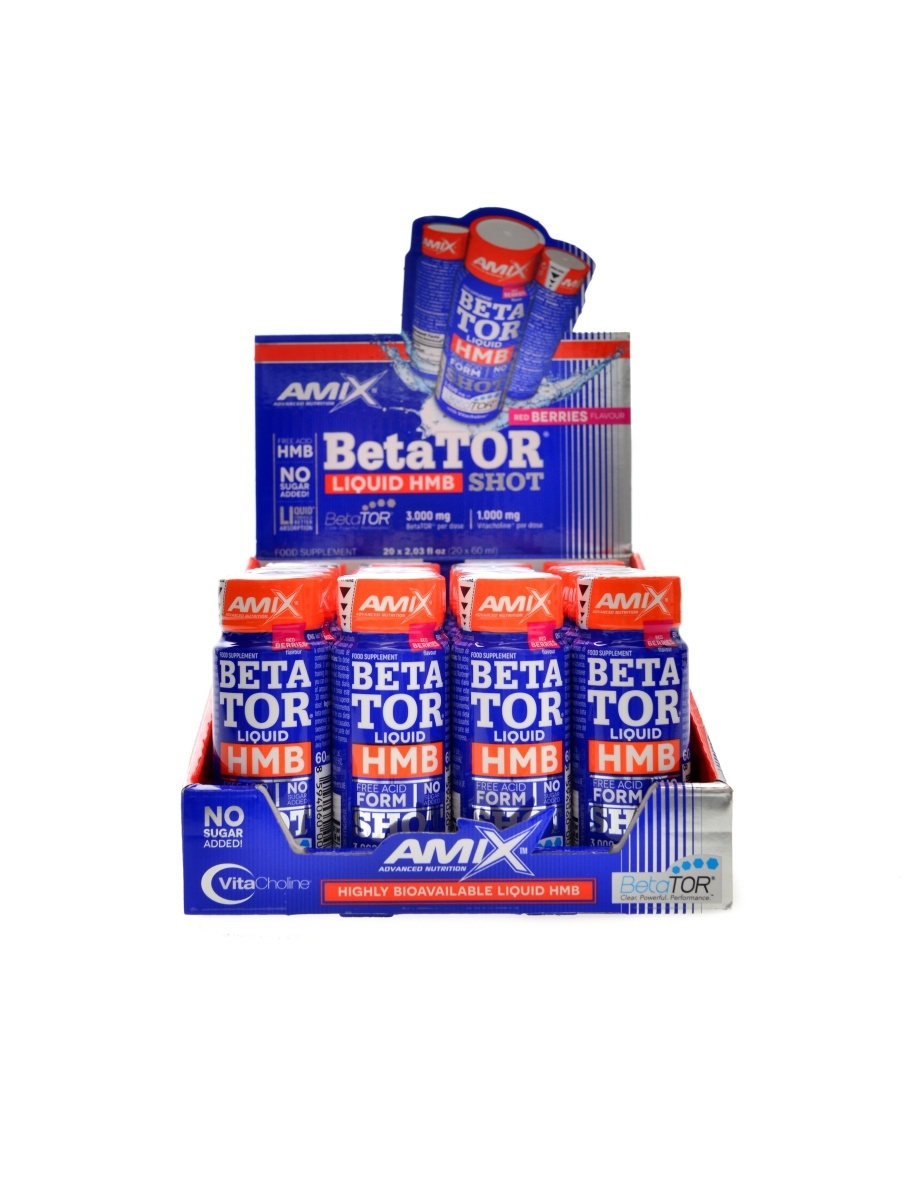 AmixTM BetaTOR LIQUID SHOT obsahuje unikátní novou volnou kyselinovou formu beta-hydroxy-beta-methylbutyrátu v kombinaci s Vitacholinem®.