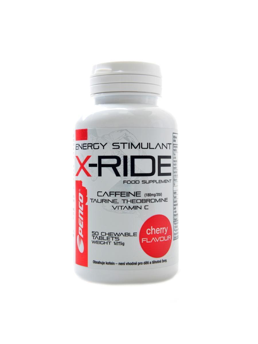 Penco® X-RIDE je unikátní tableta pro nabuzení vašeho těla a mysli. Obsahuje kombinaci biologicky aktivních látek s povzbuzujícími účinky. Nosičem těchto látek je glukóza s chladivým efektem v ústech. Významnou složkou přípravku je extrakt z kakaových bobů (Theobroma cacao L.). V historii bylo kakao považována za pokrm bohů . Nejdůležitější látkou v kakaových bobech je theobromin, který má povzbuzující účinek na centrální nervový systém (CNS). Kakaové boby kromě alkaloidů (theobrominu, kofeinu a theofylinu) a polyfenolů s antioxidačními účinky obsahují i psychoaktivní látky, které ovlivňují vnímání, náladu a mají antidepresivní efekt. Pozitivní účinky kofeinu na zlepšení mentálních a fyzických schopností byly potvrzeny mnoha studiemi. Byla uznána role kofeinu na zvýšení bystrosti, soustředění, schopnosti rozhodování v kritických okamžicích a rezistenci vůči stresu. Byl také prokázán účinek kofeinu na zvýšení vytrvalostního výkonu a snížení vnímání námahy. Podle vyjádření EFSA jsou tyto účinky podmíněny vysokým dávkováním kofeinu 3-4 mg/ kg tělesné hmotnosti. Za bezpečnou dávku je považován denní příjem kofeinu 300 mg.