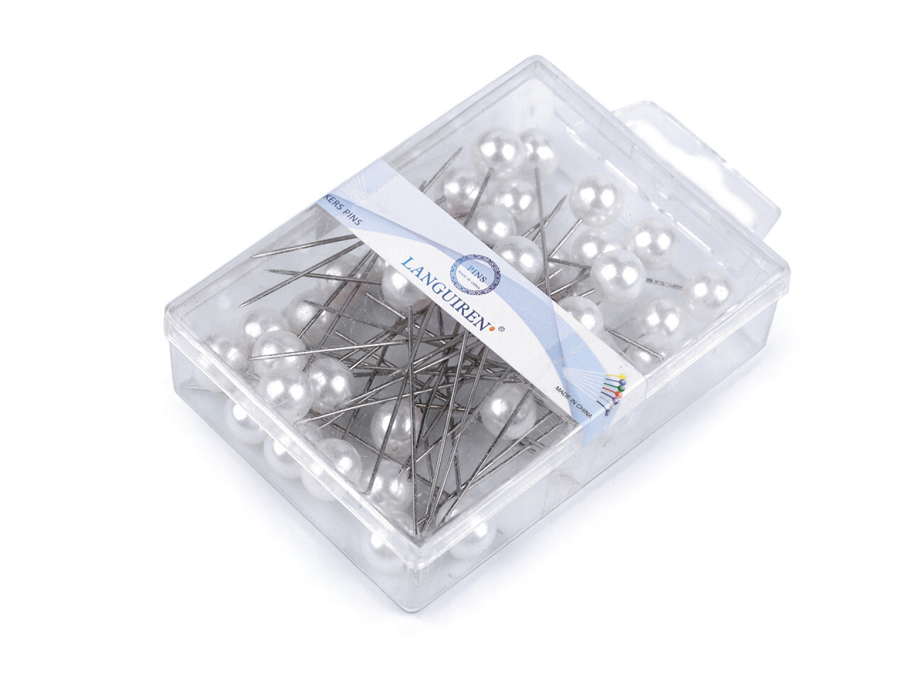 Ozdobné špendlíky s velkou hlavičkou délka 60 mm - 40 ks - bílá