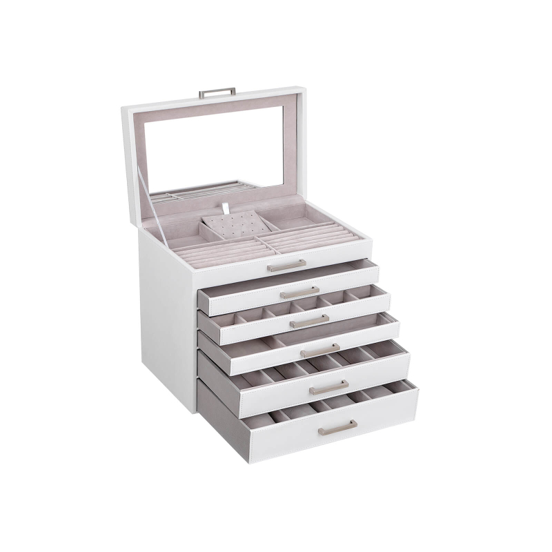 - Velkorysý prostor: Pět zásuvek a šest pater pro pohodlné uspořádání všech šperků.