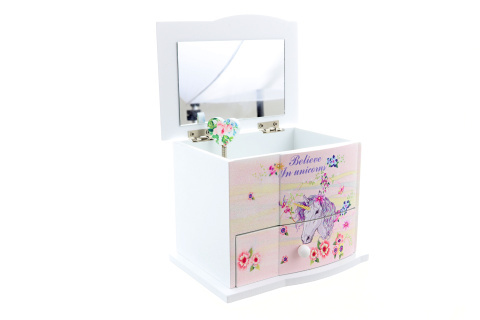 Objevte kouzlo hudební šperkovnice s motivem jednorožce, která okouzlí každou milovnici pohádkových věcí!