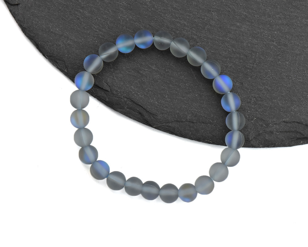Opalit je syntetický kámen. Jde o uměle vyrobené opálové sklo, které svými světelnými odlesky napodobuje přírodní opálové hmoty (gely). Svým vzhledem připomíná měsíční kámen. Charakterizují ho mléčné a krásné barevné odstíny. Mezi nejoblíbenější patří bílá, růžová, modrá, tyrkysová, šedá a fialová.Dětský náramek s kuličkou 6 mm. Délka náramku je cca 16 cm.